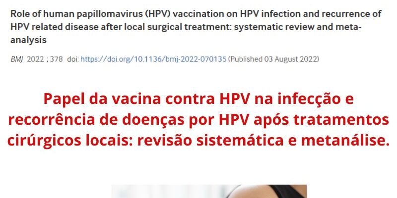 Mais uma revisão sistemática e metanálise publicada em agosto/2022 com 18 estudos incluídos mostrando redução do risco de recorrência de lesão de alto grau no colo uterino em mulheres vacinadas para HPV comparado às não vacinadas. Precisamos ponderar que mais estudos com adequado desenho metodológico são necessários para reduzir a heterogeneidade e ter evidências com melhor qualidade para avaliar custo efetividade de sua aplicação na rede pública.